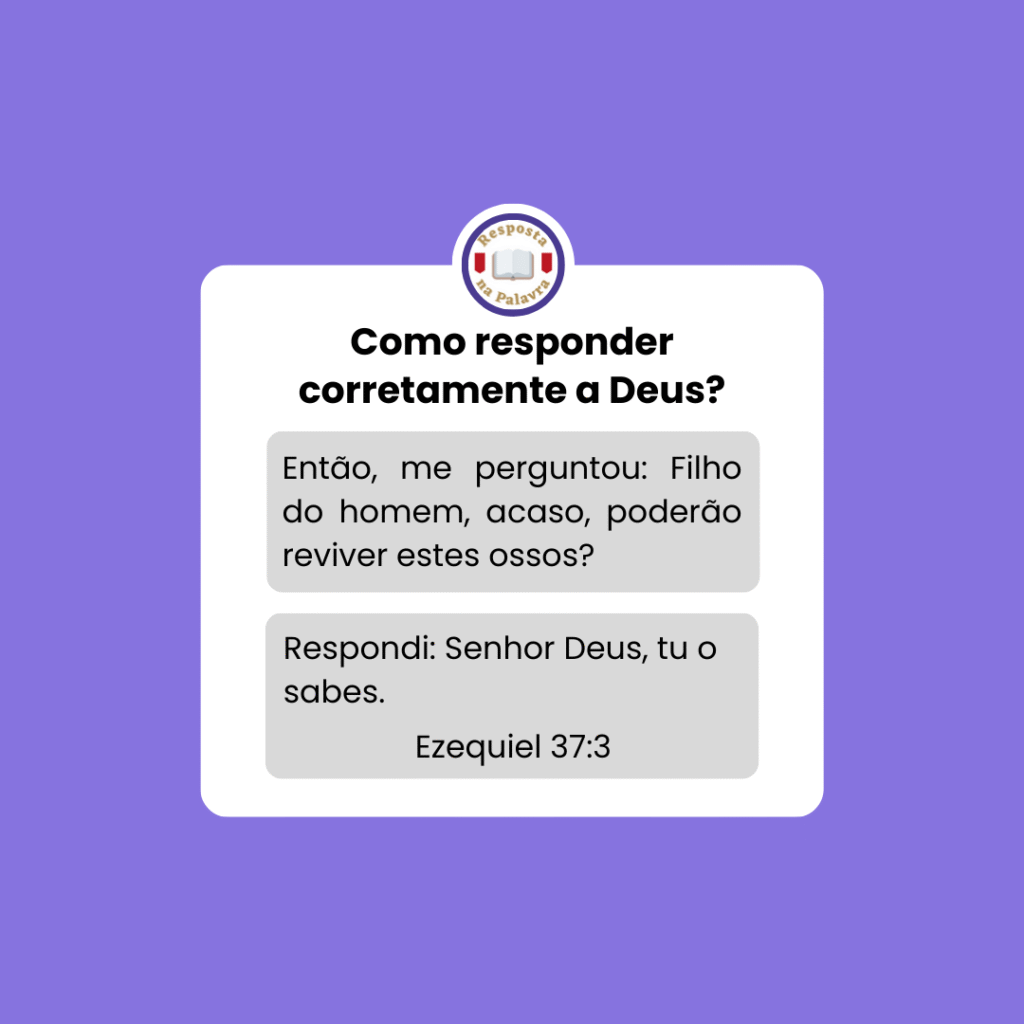 Com essa resposta, Ezequiel estava dizendo: Não sei se esses ossos são capazes de reviver. Não sei de que modo esses ossos sequíssimos poderiam tornar à vida. Não sei nem quando isso ocorrerá. Mas conheço Aquele que sabe e isso é suficiente para mim.Senhor, tu o sabes” é a melhor resposta que podemos dar!